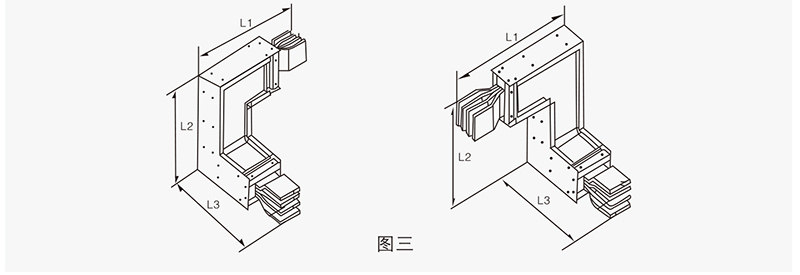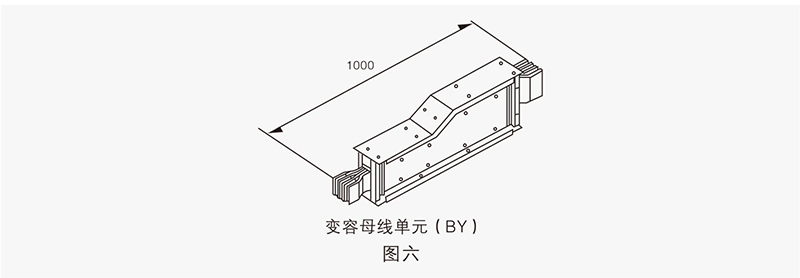 變?nèi)菽妇€主要用于同一系統(tǒng)中不同額定電流單元的連接,以使整個(gè)母線槽系統(tǒng)更加經(jīng)濟(jì)實(shí)用。其標(biāo)準(zhǔn)長(zhǎng)度為1000mm,也可根據(jù)用戶要求定制尺寸。見(jiàn)圖六