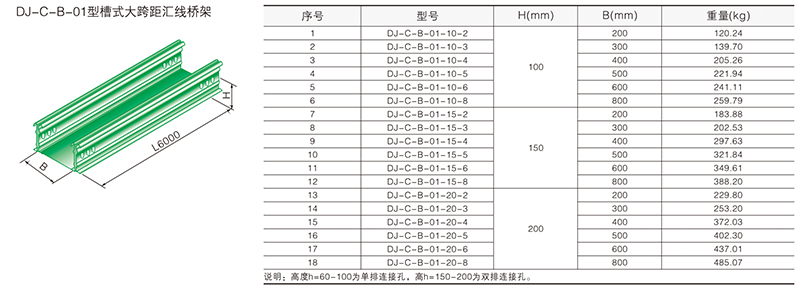 大跨距橋架分梯級(jí)式、槽式、托盤(pán)式三種型號(hào)。A型、B型二種類(lèi)別,支撐間距為6m,當(dāng)跨距大于6m時(shí)可接受特殊訂貨。