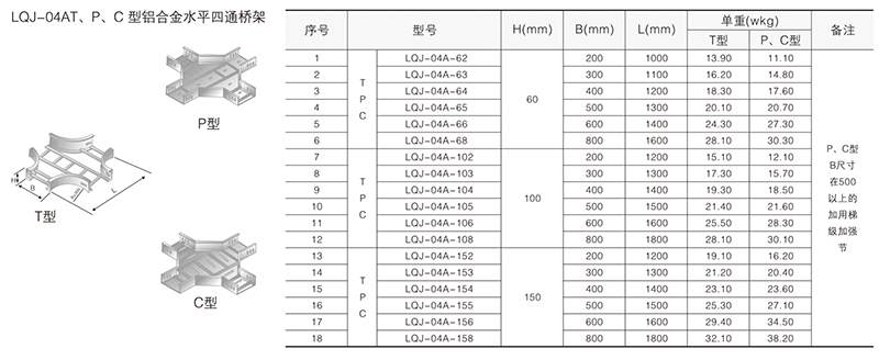LQJ-04AT、P、C型鋁合金水平四通橋架