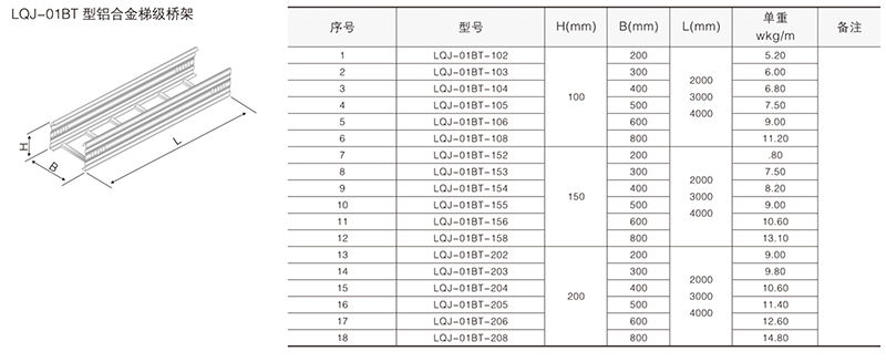 鋁合金電纜橋架在某種結構形式中無其它結構形式中的某-種產品類別,選型可作代用表示。例如:LQU-CC型槽式鋁合金電纜橋架結構形式中,無鋁合金配線橋架中的LPC-03D, 即表示為LFC-CC-03D